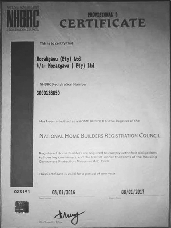 Our NHBRC Certificate